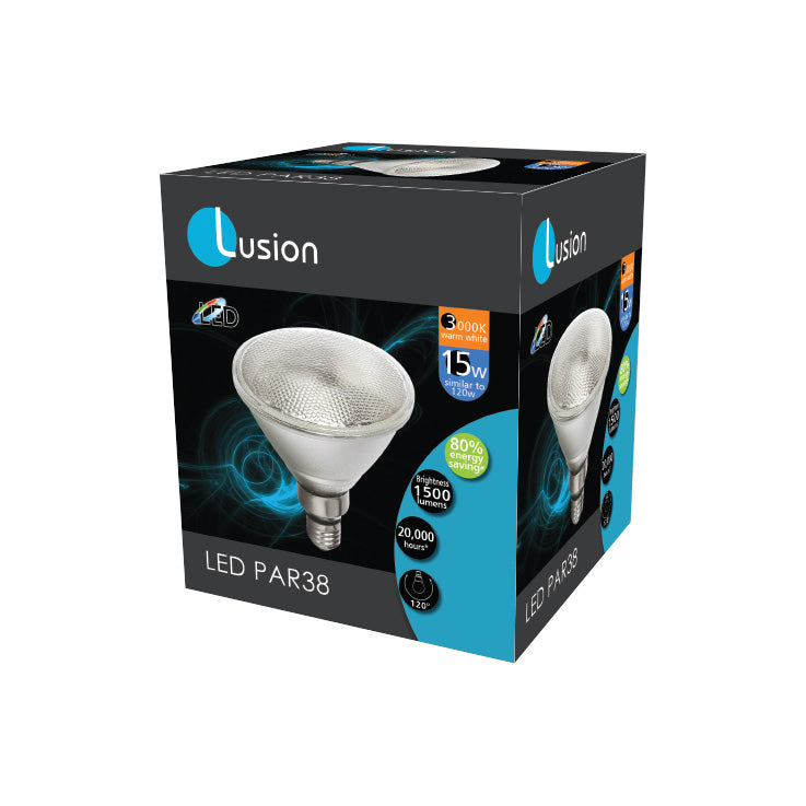 | 20801 | LPAR3815WES3K | 15w | 3000k | 1500lm | Glass | ES/E27 | Ø123 x H132 | No |